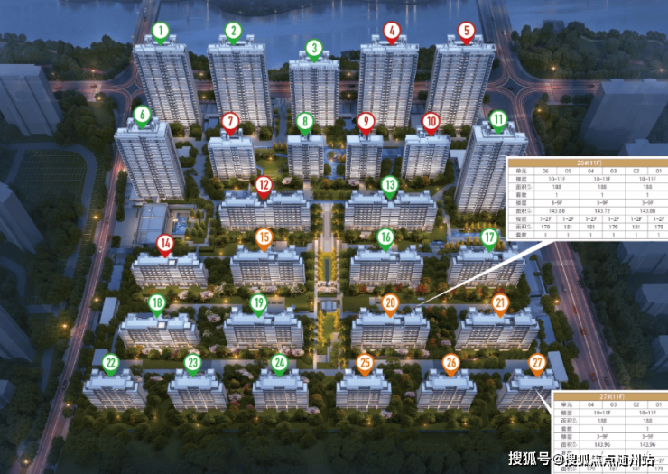 项目推出高层、洋房、叠墅全产品线,面积段约99-188㎡,满足首置、改善、高端客群需求: