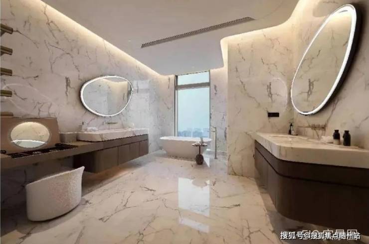 南向三大套房布局,24米开间奢享,甚至容得下四辆加长林肯。主卧空间气派不凡,双开门设计直通超大主卫,鱼肚白通顶材质搭配劳芬全系顶配卫浴,连公卫也配备智能马桶。于此,泡澡无需顾虑窗帘,只需享受奢华与自在。