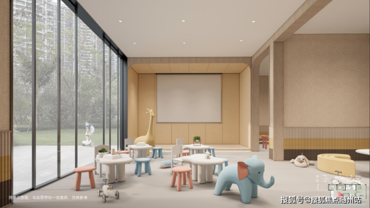 映樾府于9#、10#楼栋设置架空层空间,包含阅读区、会客区、儿童区等,为社区每一位业主量身定制一个包罗万象的架空层,打造出全龄主题社交空间,让生活场景充满更多选择,也让邻里情长有了成熟的载体。