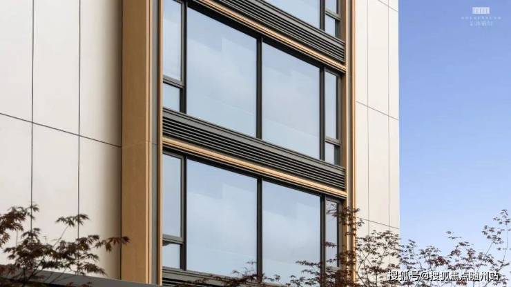 在园中漫步之际,抬头可见高颜值建筑立面,大面积铝板与超大尺度玻璃加之极窄细边框,构建出“超流线一体屏”的视觉效果,美学质感斐然,亦让空间更加通透。