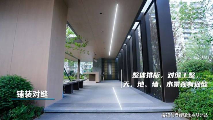 以铺装铺贴工法为例,预先整体排版,控制拼缝的“横平竖直”,且天、地、墙、水景强制通缝,保证对缝效果。整个园景设计线形流畅,弧度饱满,种植密实不露土,边界清晰且美观。