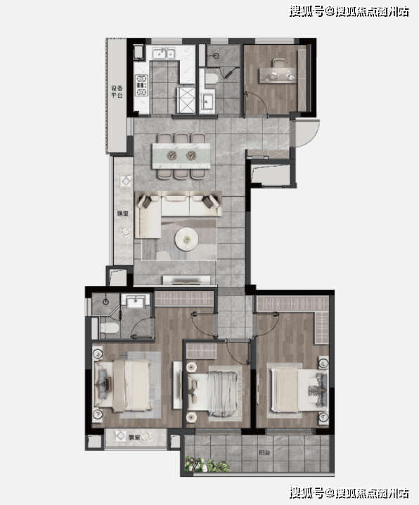 户型做了动静分区,若有二胎打算,四房设计完全Hold得住,并且三间卧室全部朝南;至于北面X空间,既能作为书房、也能作为老人暂住的客房,非常灵活。