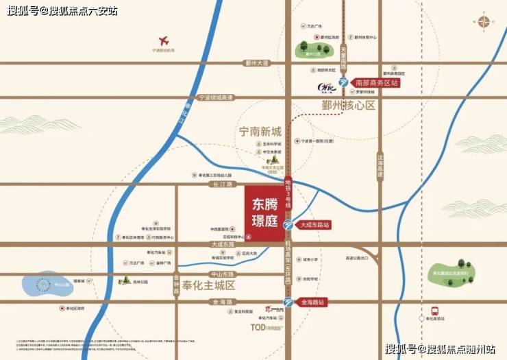 作为奉化首个集高档住宅、交通换乘、休闲娱乐、商业购物、商务办公于一体的超高端TOD中心,宝龙东腾璟庭无疑是奉化城市发展的标志性项目。项目位于奉化的城市主轴——大成东路上,这里是奉化的“黄金十字中心”,连接着奉化的老城与新城,是城市发展的重要节点。地铁3号线与东环线上的机场路高架南延无缝对接,使项目与宁波主城区紧密相连,交通便捷无比。