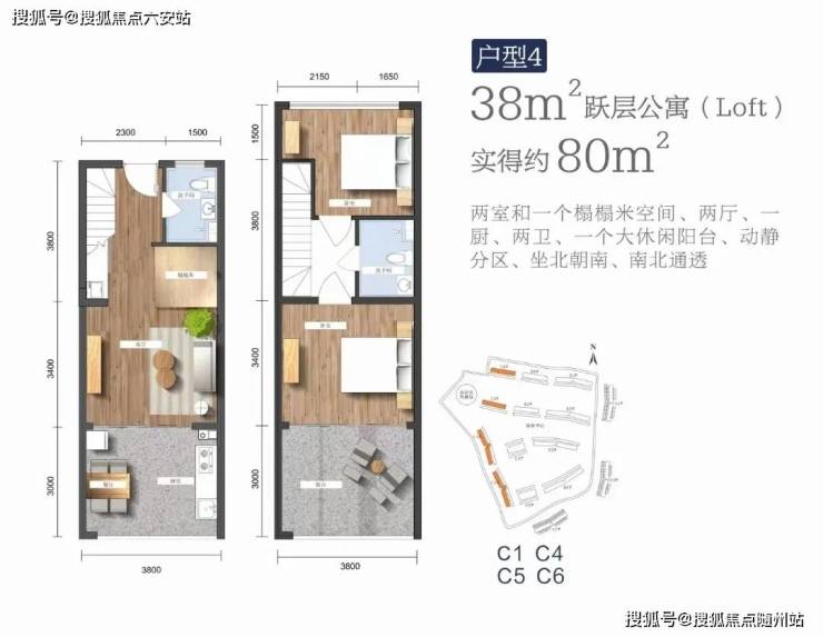 建筑面积38㎡跃层,实得面积约82㎡