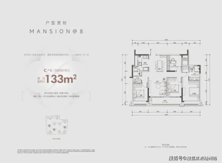 建面约135方边套户型,在空间设计上,升级户型灵动性和社交空间最大化,精心布局入户玄关,近40方的光幕大横厅、主卧星级套房、全景飘窗、约4.3米面宽的厨房等空间系统,完全是以豪宅的尺度奢享不同阶段的生活。