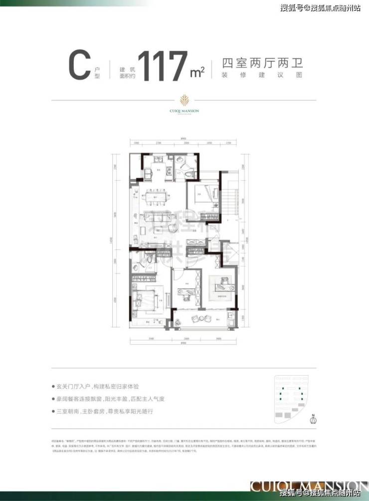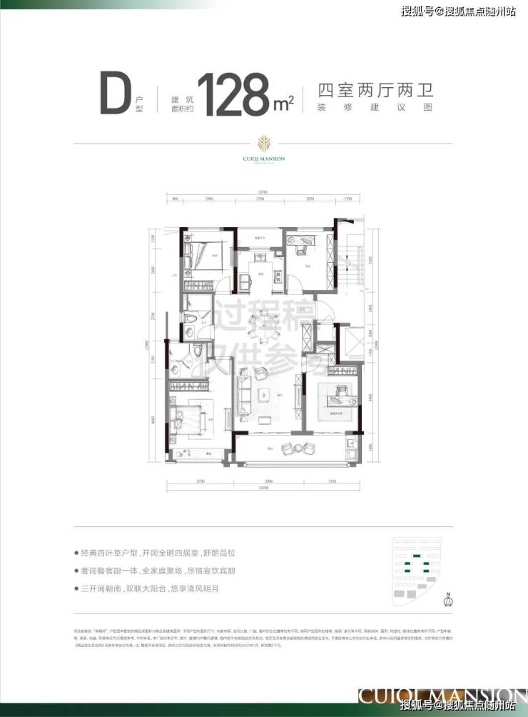 建面约128方采用了深受市场认可的经典的四叶草格局!这种户型的显著特点,就是消灭过道。客厅居于房子的中心,可以直接到达卧室、书房、厨房等各个空间。另外,4个功能间居于四角,对私密性的维护也和当下社会注重隐私的需求不谋而合,即使是孩子、长辈同住,也能有一个很好的家庭秩序。售楼处电话☎ 400 816 3856 ✅✅「已认证」