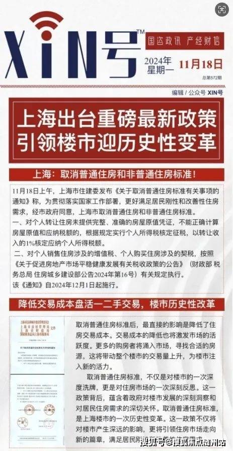 11月18日上午,上海市住建委发布《关于取消普通住房标准有关事项的通知》称,为贯彻落实国家工作部署,更好满足居民刚性和改善性住房需求,经市政府同意,上海市取消普通住房和非普通住房标准。