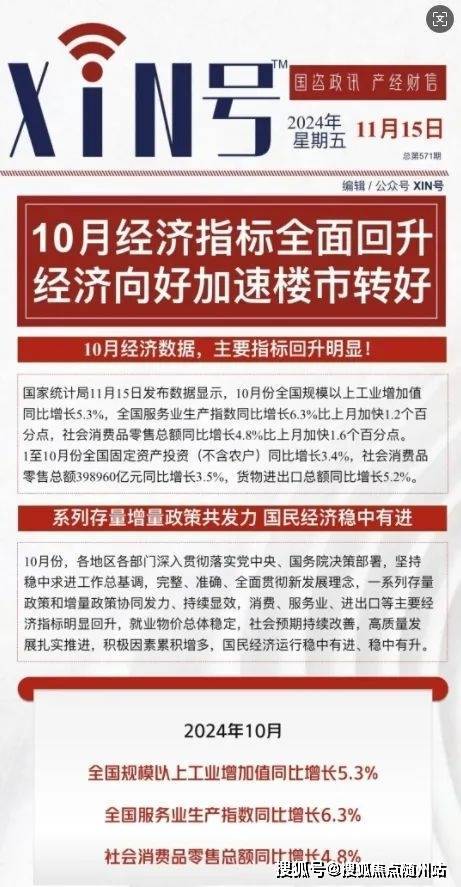 国家统计局11月15日发布数据显示,10月经济数据,主要指标回升明显。