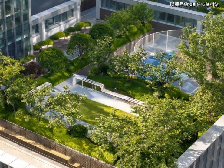 屋面景观以功能为主要导向,由主要步行道路串联起来,形成一个个被植物包裹的独立空间。