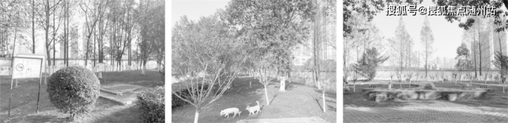 在保留大部分原始乔木的前提下,设计中重新整理树种和位置,增加节点花境的运用,局部设置坐凳点缀,使之成为一处既可供周边市民漫步的绿地公园,又为未来内部的商业街区带来引流效果。