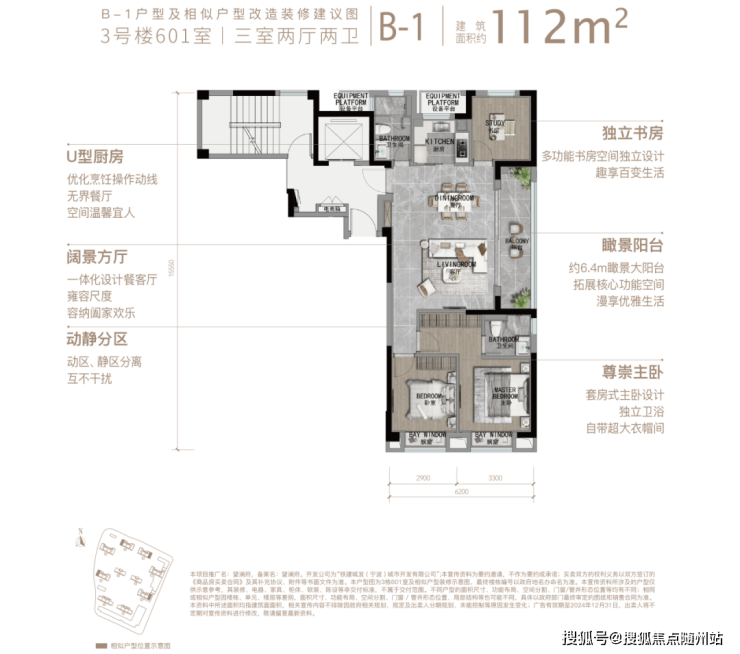 建筑面积约112㎡的两款三房户型,皆是尺度与功能做出了进阶,以匹配不同类型家庭居住选择。