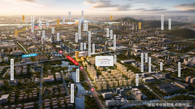 首先,最大的区别在于滨纷城是一个“双地铁口”上盖项目,横跨了地铁9号线兴元路站(在建)、康信路站(在建)两大站点,这在之前开发的TOD项目中从未有过。