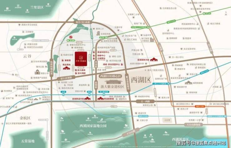 项目直线距离约1.5公里处就是一流名校浙江大学,由此衍生出西湖科技园、紫金创业园、云谷小镇等创新策源区,集合准独角兽企业有约300多家,已有企业总部约30余家,上市企业约14家……形成“产学研”闭环,是赋能杭州经济发展的强大引擎。(信息来源:杭州城西科创大走廊管理委员会官微)