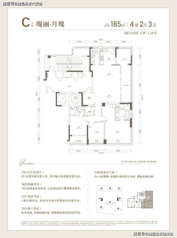 这款边套户型,不仅是私梯独立玄关入户,而且落位在4幢、5幢,直面中央景观园林,约7米瞰景落地窗引美景入室;主卧约4.8米面宽+270度环幕飘窗设计,豪华双套房,约52方的超级大方厅装得下一套小刚需房,媲美星级酒店居家体验。