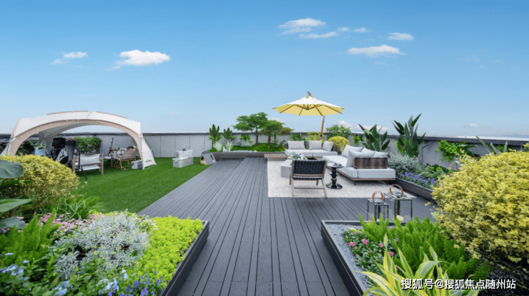 顶层户型更独享约250平方米星空露台,底层则规划约100平方米私属庭院,形成“垂直花园社区”的独特体验。