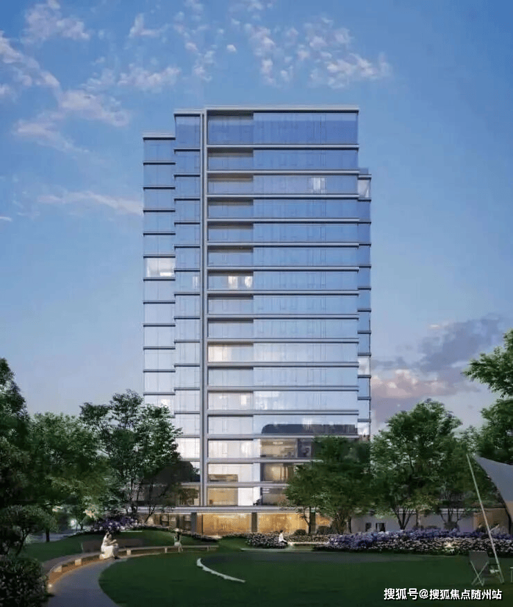 为了与景观相呼应,园区立面采用“水晶天幕”设计,线条纤细,使建筑宛如天空中垂下的纯净湖面。
