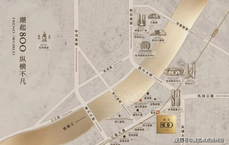 项目雄踞滨江区西兴北核心,江南大道与星民路交汇处,占据杭州 “拥江发展” 战略黄金节点。地铁 6 号线星民站上盖,步行约 50 米直达地铁站,30 分钟通达武林、萧山机场,与奥体 CBD、滨江区政府仅一站之隔。东侧直面钱塘江景,对望钱江新城日月同辉,并肩杭州之门、大小莲花碗等地标集群,南侧俯瞰物联网小镇产业繁华,是滨江最具国际视野的城市封面地段。拥江核心 + 奥体辐射 + 产业赋能三重利好叠加,地段价值无可复制,资产保值增值潜力强劲。