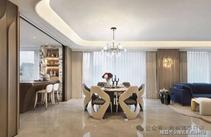 在这片开放式布局的公区空间,客厅、餐厅、LOUNGE与中西厨交织成一幅生活的画卷,艺术品点缀其间,大气而灵动。对窗而坐,这里不仅是与自我对话的静谧角落,更是家人间温馨交流的港湾,朋友间欢聚的乐园。每一次坐下,都是一场生活的盛宴,每一次对话,都让心灵更加丰盈。