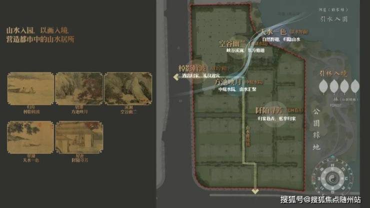 > 江脉入园:引南门江水入园,江园共生藏风纳水