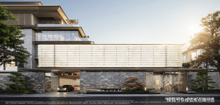 建筑取法吴越古建,三重重檐叠落映天际,宽檐浅廊承东方雅致。安哥拉黑、普拉达绿等奢石琢形,黑松红枫相映成趣,铝板、陶板与玻璃碰撞出古今对话。每一处肌理都暗藏文脉,每一寸材质都经得起时光,如吴越水墨绘就当代画境,让世家威仪与生活温度兼具。