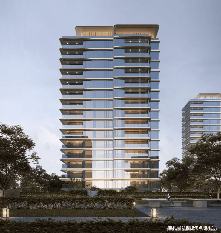 高比例玻璃幕墙,如瀑布般映射四时美景。采用大面积三玻两腔LOW-E玻璃,既节能又降噪。其优异透光性配合铝板线条,使建筑与风景融合,光影折射高级质感。