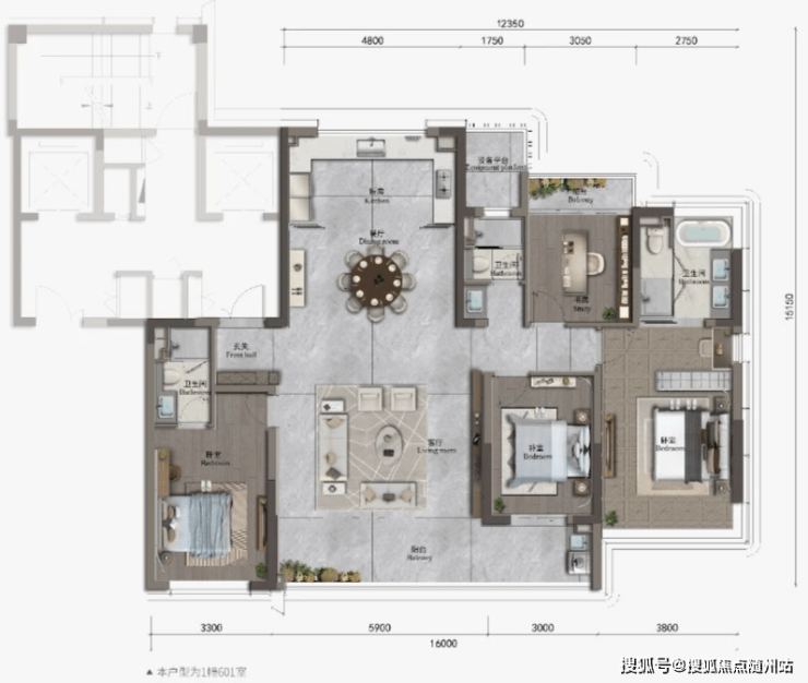 建面约248㎡(南厅),4房2厅3卫 ,层高约3.20米。亮点包括:一梯一户的单独入户、玻璃展开面超30米、所有的客厅、阳台、卧室、卫生间浴缸全部为落地玻璃,取消了反坎;主卧套房开间4.3米,面积约49.6平,套内含起居厅、男女平权双衣帽间、自然采光的梳妆台及转角大浴缸,实现主卧“大家化”;9.6米宽南阳台,6.5米开间的客厅以及约3.7米的次主卧套房。