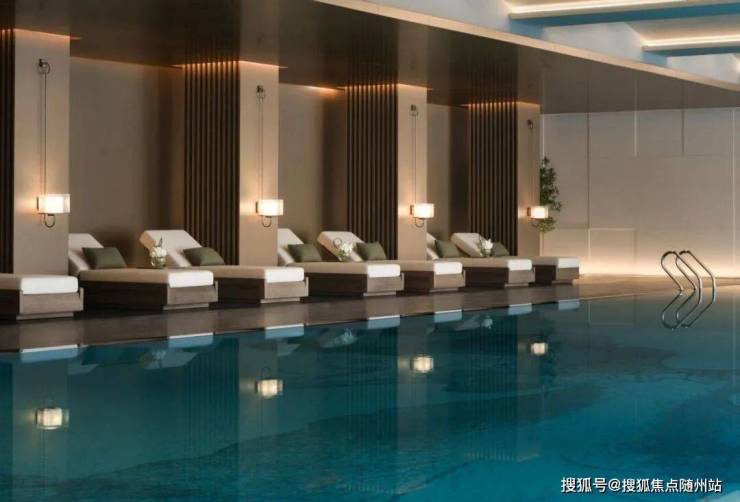 半国标级的无界泳池,可享受恒温体验,碧玉琉璃般的水色,透过大面积玻璃幕墙与下沉水院的互相映照,漾开自在的微波;