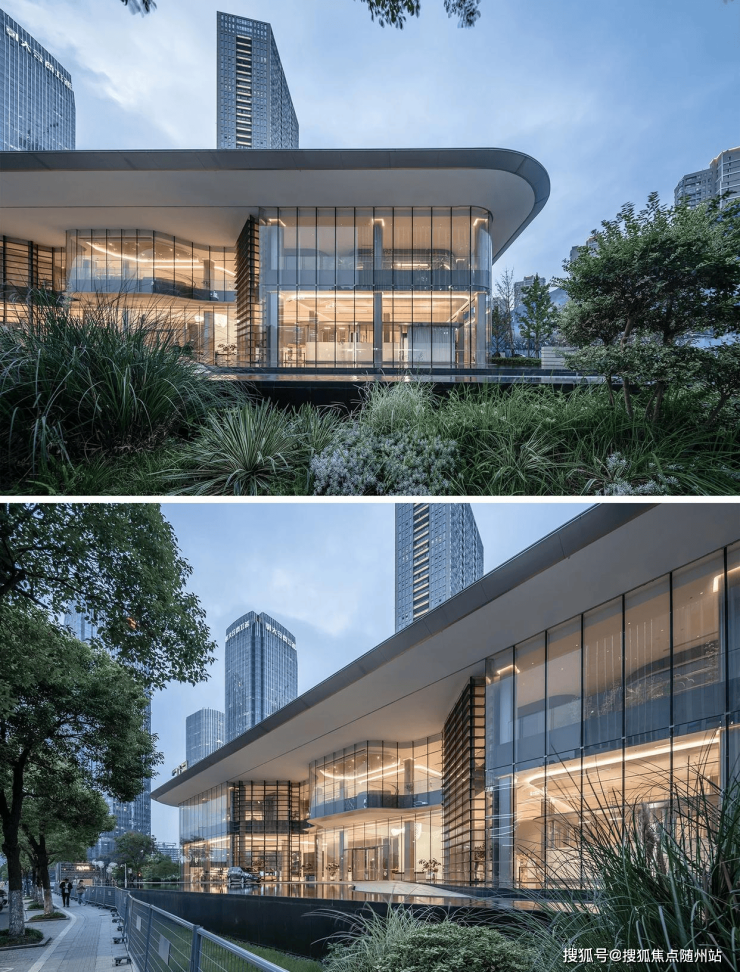 EIC的综合体设计独具匠心,采用了“梦露裙摆式”的流线一体悬挑大雨棚,以及苹果旗舰店同款的全球最大单幅尺寸水晶玻璃。三层挑高、剧院式OFFICE大堂,汽车驶入建筑、殿堂级迎宾落客区,SocialHub式的无边界超级大堂,挑高9米空中花园……每一处都彰显出其独特的设计理念和卓越的品质。