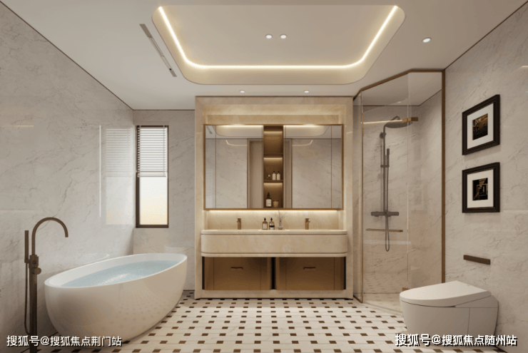 四是极品主卧,我更想称之为任性宠爱自己的「女王空间」:泡澡的大浴缸不管用不用但必须拥有;互不干扰的双台盆必须要有;超大衣帽间更必须拥有。还带有270度的转角飘窗,增加采光和景观视野。