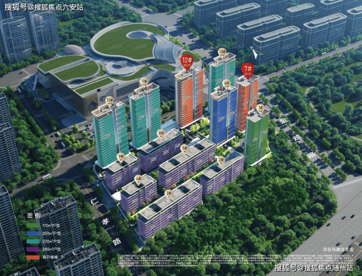 规划布局:共13幢住宅(7幢高层+6幢洋房),建面约170-270㎡雅奢大宅(高层170-220㎡,洋房240-270㎡及少量270㎡顶跃);整体抬高约11米(含5.4米抬板+5.2米架空层),实现“全抬板”立体社区。