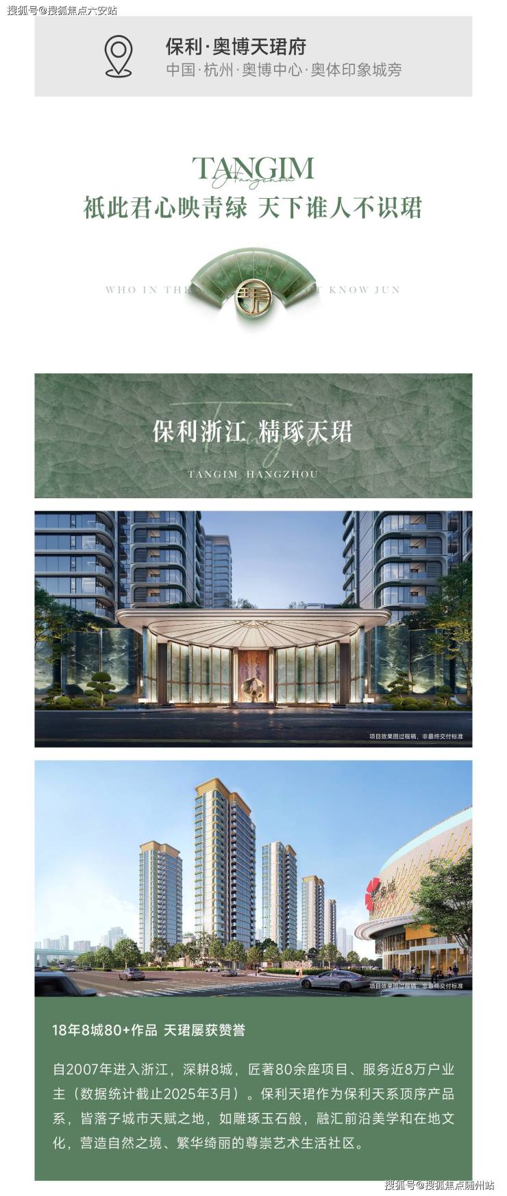 开发商与产品系:保利发展(央企,18年深耕浙江,匠著80余座项目)TOP级“天珺”系作品(天系3.0迭代,以“玉”为核心文化符号,融汇杭州在地元素)。