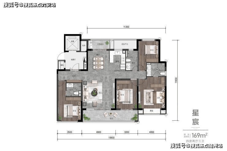 另一款约136㎡样板房同样惊艳,四房两卫+四叶草布局,对二胎家庭也完全够用。