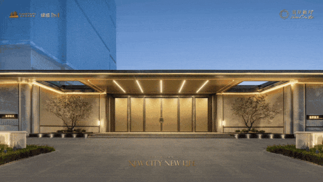 立面方面,汲取现代轻奢法式的白金美学灵感,叠加大面玻璃,打造出光影灵动的对称式金色画框立面。
