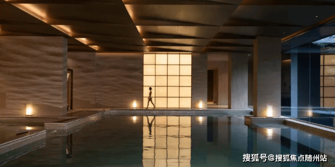大尺度落地窗,与下沉庭院无缝连接,将窗外的山石、松影与飞瀑引入室内。每一次畅游,仿佛流动于山水长卷之中。整个泳池空间全部采用“香槟金”马赛克铺装,加上度假风情的休憩区,以及疗愈按摩系统,酒店式尊崇的舒适感扑面而来。