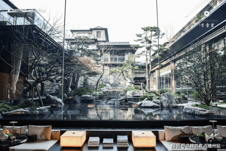 漫步于光影交织的幽静庭院,您将踏入一方充满诗意的天地。潺潺流水映照着婆娑树影,挺拔树姿为这片空间注入向上的生机,纵向延伸出无限的视觉张力。这座下沉庭院,不仅拉近了建筑与自然的情感共鸣,更使室内与景观紧密相连、和谐相融。每一扇窗户,都犹如框中的一幅生动山水画。