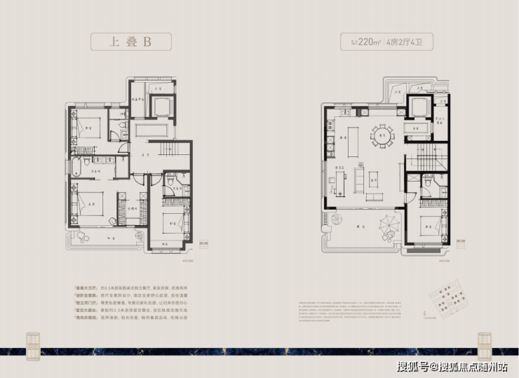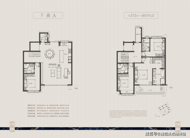 建面约210-280㎡纯4层叠墅,通过上叠北庭下叠南院,独立归家动线、约6m层高地下空间与全套房设计等,推动叠墅空间进化。精装上,嘉格纳、博世等百年品牌加持,尽显极简优雅。