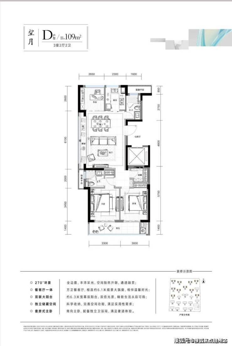 ◼建筑面积约109㎡户型,270°环景、约6.3米宽幕双阳台、独立储藏室、套房式主卧。