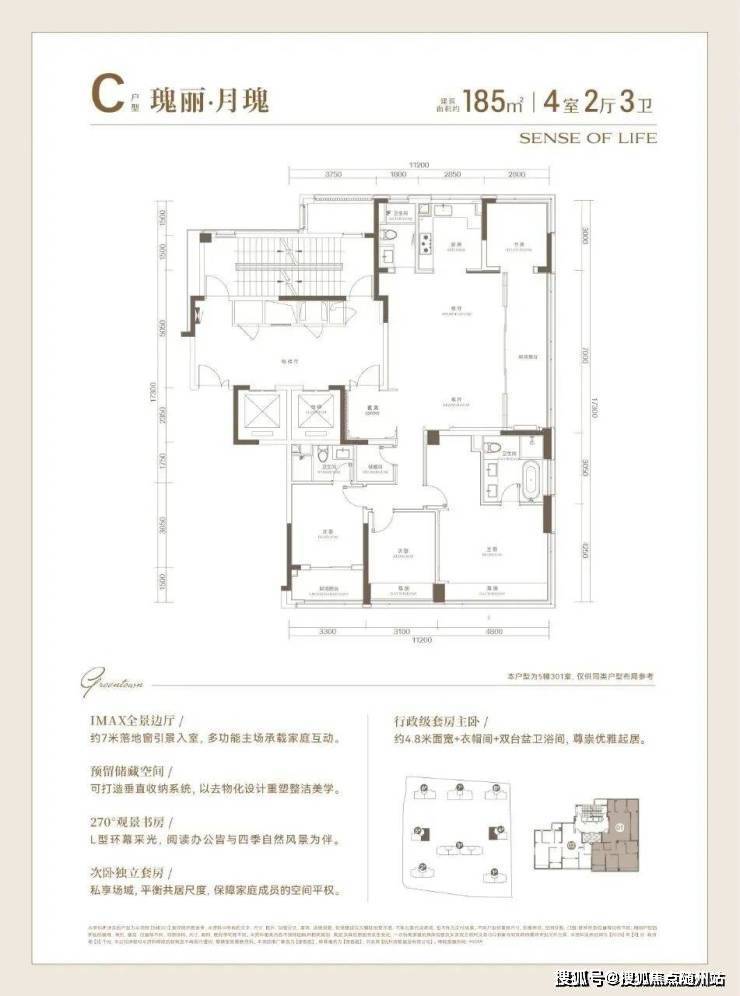 建面约185方户型,高品质的寰景奢宅: