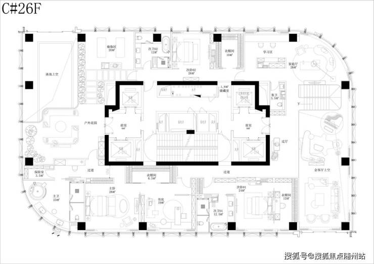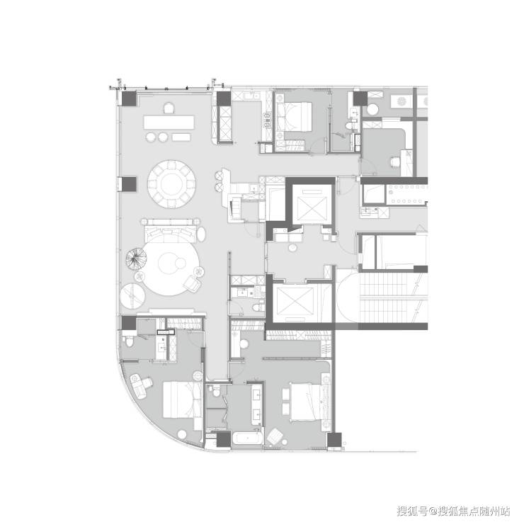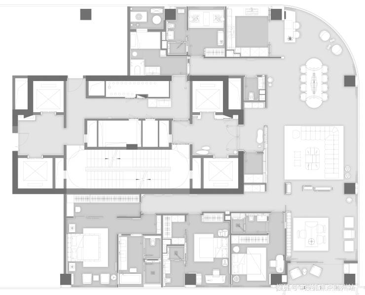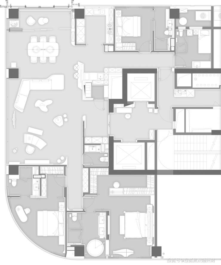 该户型由香港 CCD 郑中设计事务所郑忠老师设计,为5房2 厅5卫带保姆间、阳台的四套房设计。