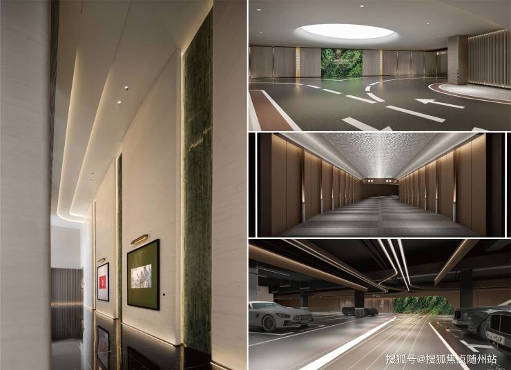 奢华通廊:车行廊道采用降噪花岗岩铺满、星空顶的设计,营造尊崇归家感。