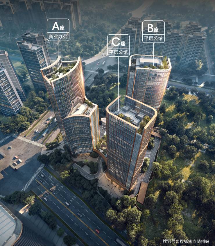 【建筑规划】:A幢为写字楼;B、C幢为在售大平层、D幢单体商业