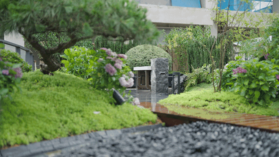 艺术风帘水幕,搭配名贵沙朴植种,彰显归家轴线的仪式感;近40米超宽挑檐大堂,以艺术作品感的形态与镜面艺术水景交相呼应,太阳纹定制铺装,营造出全球顶级酒店风格的落客区环岛,盛迎【胤璞】名仕归;更打造“不离繁华而获山林之怡,大隐于市而有林泉之欢”的绿景宁谧空间,俯拾自然野趣。