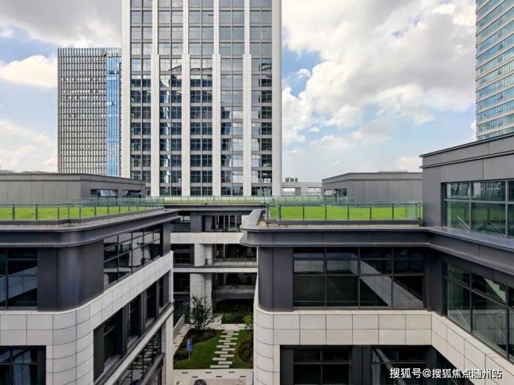 区内通过多元景观设计与精致的布局,嵌入口袋公园、慢行步道、空中花园、下沉式广场等,有着一步一景的独特体验,形成办公休闲与生态融合的绿色空间。