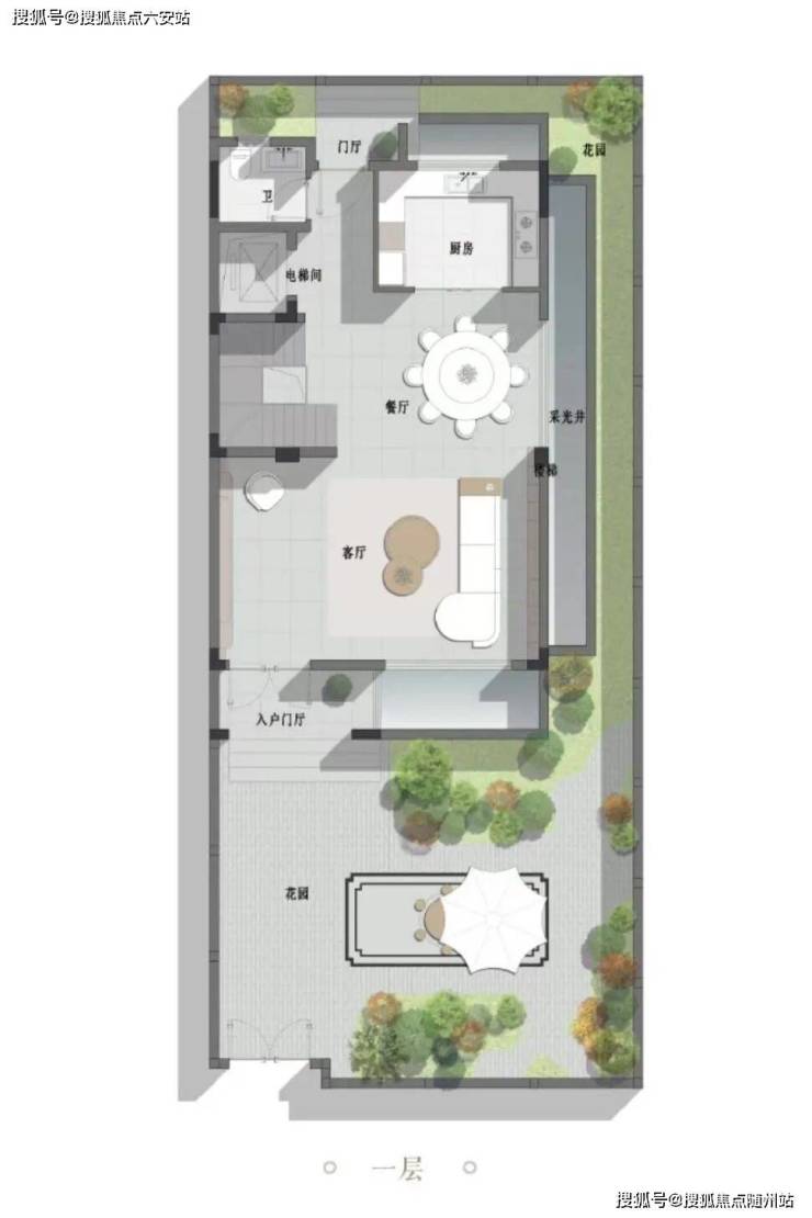 一层家庭烟火层,约7米横厅与围合式私家庭院无缝衔接,这里是全家最热闹的互动核心。上下分层给予全家人充分的静谧,庭院的自然陪伴也让生活拥有充分的舒展。