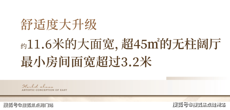 单层约11.6米的南向大面宽,采光面和观景体验更优。约6.9X6.6m的超45㎡无柱阔厅,开阔感十足,更是轻松满足会客、休闲、用餐等家庭厅需求。
