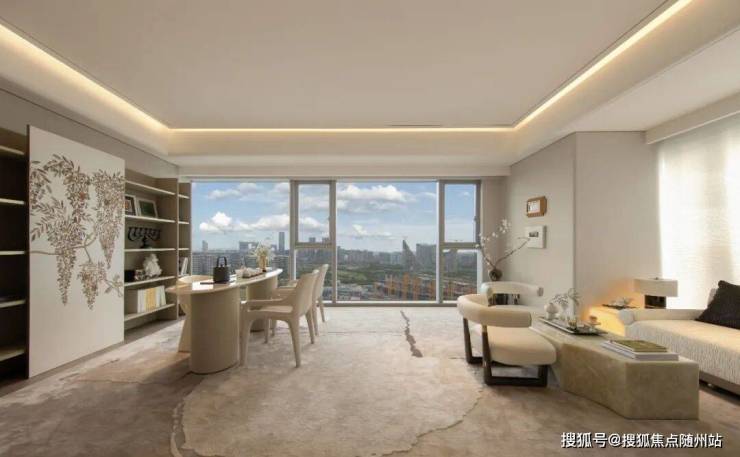 同时,建面约 20㎡的瞰景书房,更是一方静谧的精神领地。以一城经纬的捭阖之势,将窗外的中轴盛景与室内的茶香书香融为一体,让人沉浸在 “心远地自偏” 的悠然意境中。“艺术是德行的宝库 ”,这个空间不仅承载着文化韵律与生活诗意,更滋养着居者境见天地的精神世界。