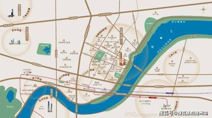 杭州拥江发展与城市东拓交汇,项目所在板块属于城市重点发展方向,项目所在之江路及春潮路之间,是未来商务重点发展区域。