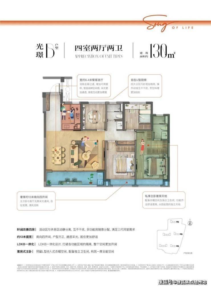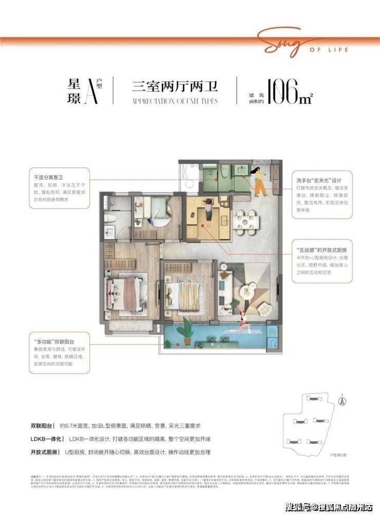 户户阔绰大开间、LDK一体化、开放式厨房与南向双联阳台,再加上三分离次卫空间、洗手台“玄关化”、套房主卧等,给到业主更具仪式感的美好体验和尊重。