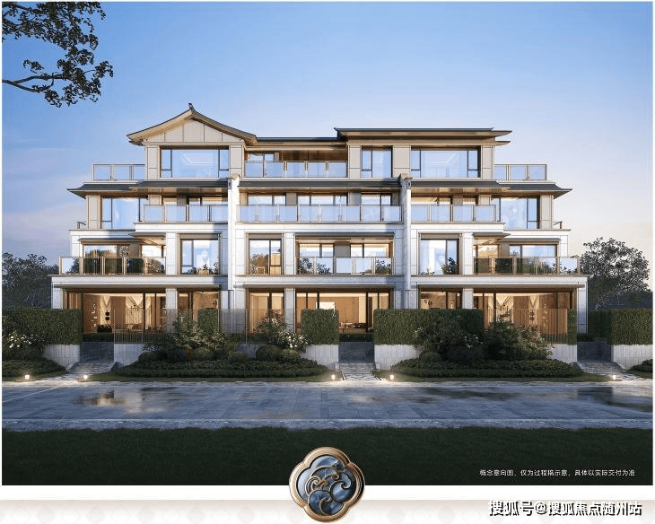 建筑风格方面,洋房采用诗意东方风格,外立面采用石材基座+三面大面铝板,搭配中式飞檐造型,与钱江潮涌奔腾之感相互辉映,在城市天际线勾勒出跃动的韵律。