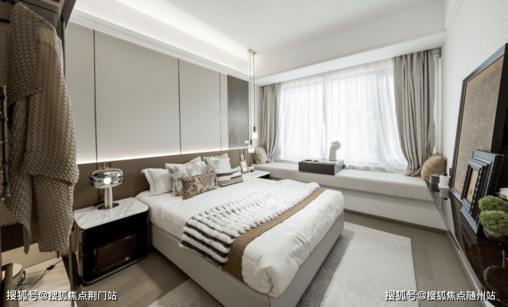 套房式主卧设计: 大尺度空间,将诗情画意和恰到好处的生活尺度和谐相融,在此卸下白天的疲惫,在独立卫浴里尽情淋浴。闲暇之余,在观景飘窗上捕捉冬日的暖阳,典藏一方天地,邂逅理想生活!